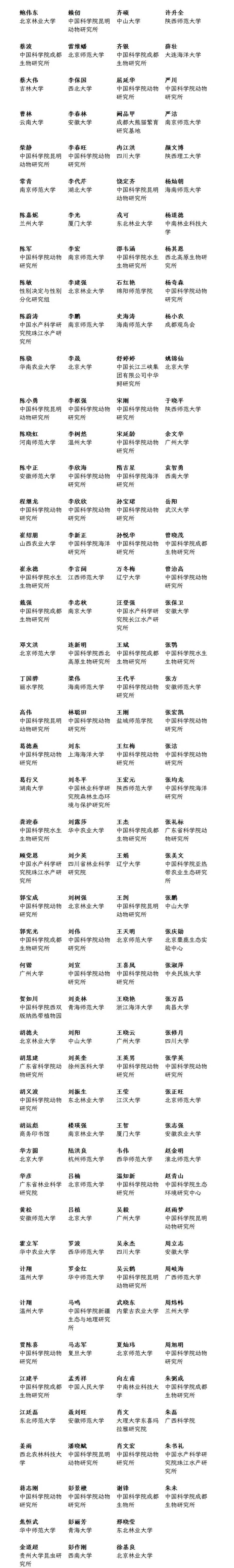 2025年度共有182位审稿专家在繁忙的科研教学之余,以严谨的治学态度和无私的奉献精神,为《动物学杂志》评审稿件。在此,我们要向2025年度审稿专家表示诚挚的感谢和崇高的敬意!(按姓氏拼音排序):